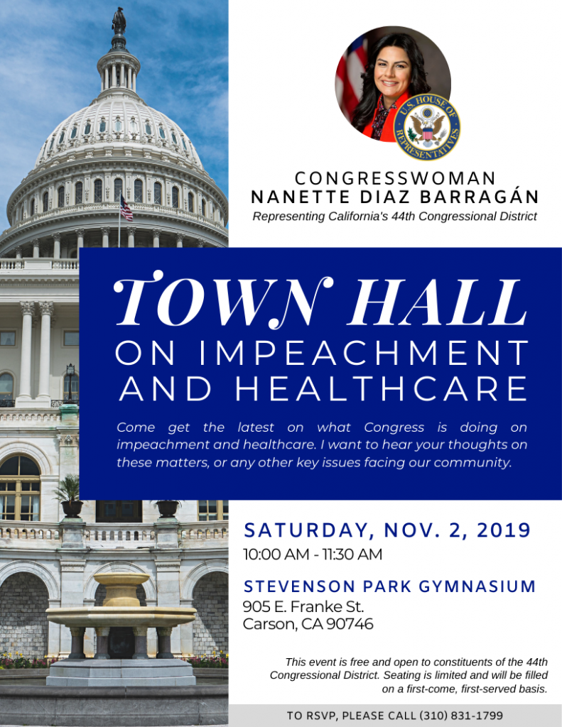 Please join me at our Town Hall on Impeachment and Healthcare on Saturday, November 2nd from 10:00 AM to 11:30 AM at the Stevenson Park Gymnasium. I want to hear…